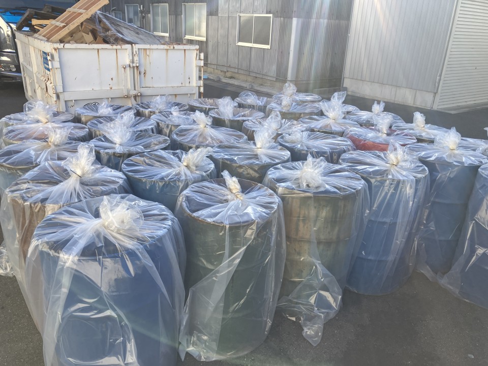 ※移し替え後のドラム缶は、若干、残物が残っておりますので、雨水等が入らないようにビニール養生等致します。