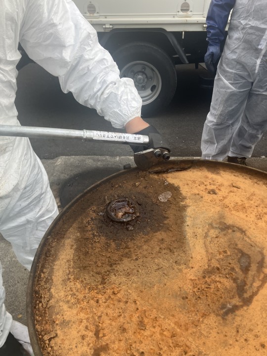 ※新しいドラム缶へ収納完了後は、即、サンプル分析等を実施し、適正処理施設にて処理を実施致します。